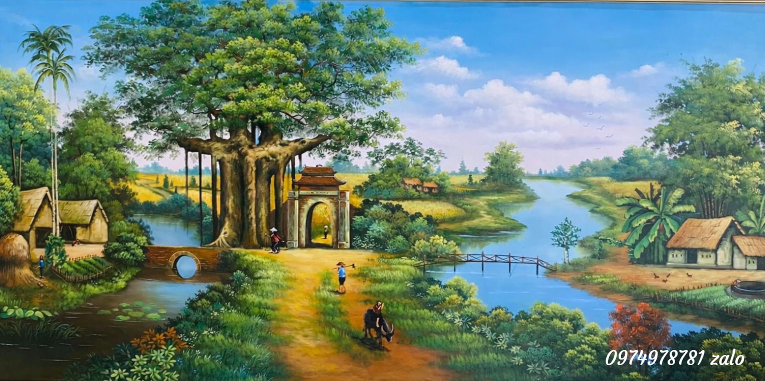 Tranh đồng quê là một trong những dòng tranh sơn dầu được ưa chuộng nhất hiện nay nhờ vẻ đẹp giản dị, mộc mạc nhưng đầy cảm xúc. Những bức tranh đồng quê Việt Nam không chỉ tái hiện chân thực hình ảnh làng quê thanh bình mà còn gợi nhớ về tuổi thơ, về những tháng ngày yên ả bên cánh đồng lúa chín, con trâu, mái đình, bến nước và lũy tre xanh. Đây chính là dòng tranh mang đậm bản sắc văn hóa dân tộc, thể hiện tình yêu quê hương đất nước một cách nhẹ nhàng nhưng sâu lắng.