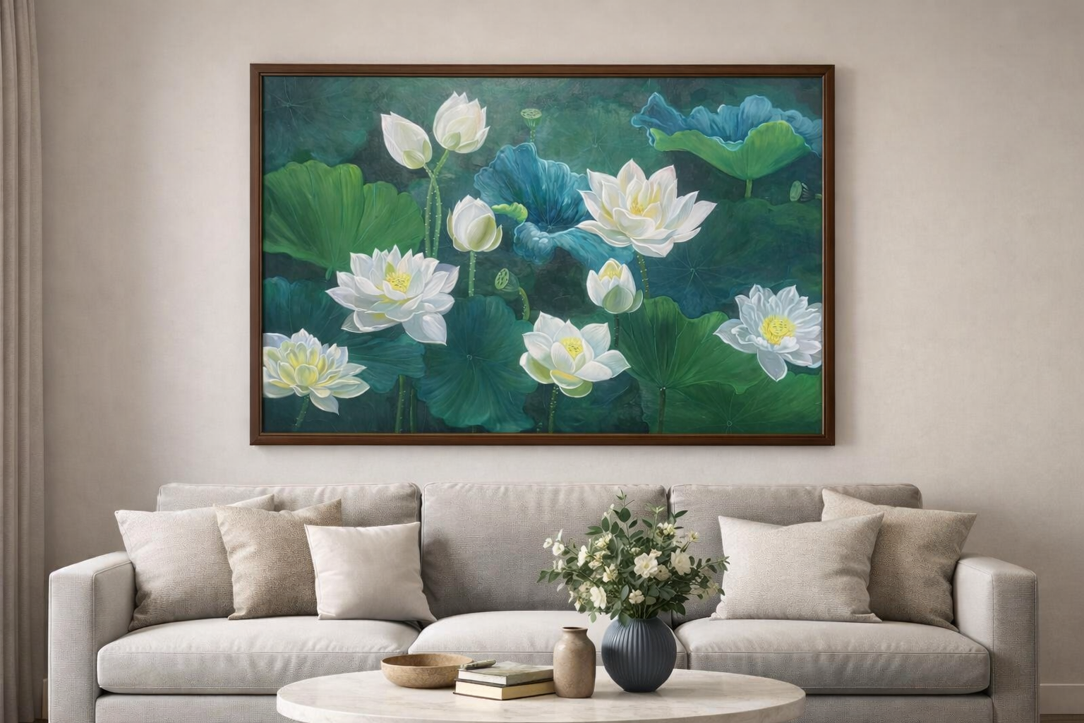 Không chỉ mang giá trị thẩm mỹ, tranh hoa sen phong thủy còn được xem là biểu tượng của tài lộc, bình an và may mắn cho gia chủ. Khi lựa chọn tranh hoa sen sơn dầu treo tường, người mua thường quan tâm đến màu sắc, kích thước và bố cục để phù hợp với không gian sống. Những gam màu như hồng nhạt, trắng tinh khôi hay vàng ấm áp giúp căn phòng trở nên thanh thoát và đầy sức sống. Bên cạnh đó, các mẫu tranh hoa sen nghệ thuật vẽ tay luôn được đánh giá cao bởi sự độc bản và giá trị lâu dài. Nếu bạn đang tìm kiếm một dòng tranh vừa trang nhã, tinh tế vừa mang ý nghĩa sâu sắc, thì tranh hoa sen sơn dầu đẹp chắc chắn là lựa chọn hoàn hảo để nâng tầm không gian và thể hiện gu thẩm mỹ riêng biệt.